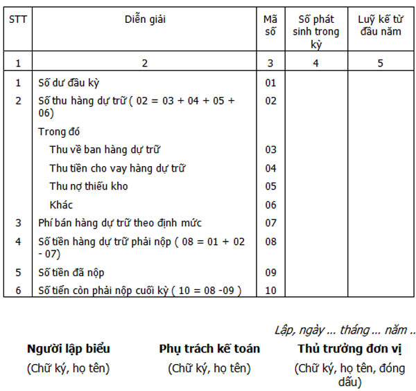 Biểu mẫu Báo cáo thu nộp tiền hàng dự trữ