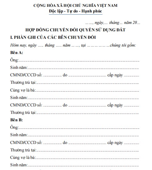 HỢP ĐỒNG CHUYỂN ĐỔI QUYỀN SỬ DỤNG ĐẤT NÔNG NGHIỆP