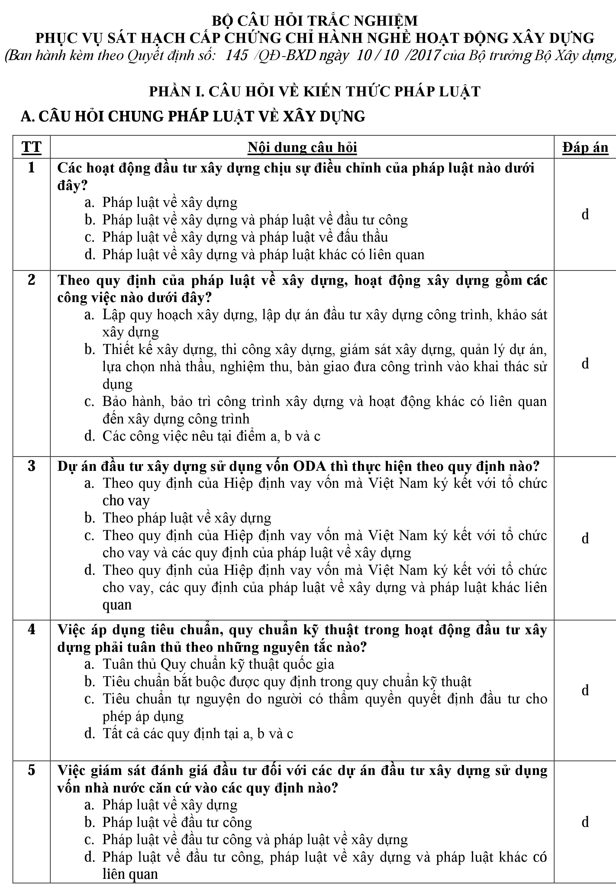Tìm hiểu thêm »Nhằm phục vụ cho các bạn có thêm tài liệu ôn tập để thi cấp chứng chỉ hoạt động ngành xây dựng, Download.vn xin giới thiệu đến các bạn Bộ câu hỏi trắc nghiệm phục vụ sát hạch cấp chứng chỉ hành nghề hoạt động xây dựng để quý vị cùng tham khảo. Đây là bộ câu hỏi mới và chuẩn nhất được Bộ Xây dựng ban hành ngày 10/10/2017. Mời các bạn cùng tham khảo.