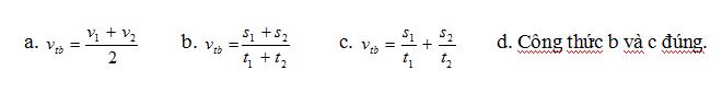 Câu 3: Một người đi được quãng đường s1 hết t1 giây, đi quãng đường tiếp theo s2 hết thời gian t2 giây. Trong các công thức dùng để tính vận tốc trung bình của người này trên cả 2 quãng đường sau, công thức nào đúng?