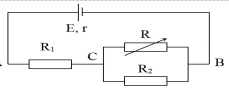 Câu 11: Cho mạch điện như hình vẽ, trong đó nguồn điện có suất điện động E = 9 V, điện trở trong r = 0,5 Ω; Các điện trở R1 = 4,5 Ω; R2 = 6 Ω; R là biến trở. Điện trở R phải có giá trị bằng bao nhiêu để công suất tiêu thụ trên R1 là lớn nhất?