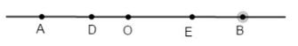 Bài 2. Cho hai tia đối nhau OA và OB. Lấy D thuộc tia OA sao cho D nằm giữa hai điểm O và A, lấy E thuộc tia OB sao cho E nằm giữa hai điểm O và B. Hỏi trong ba điểm O, D, E, điểm nào nằm giữa hai điểm còn lại?