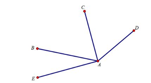 a) Tia AB nằm giữa hai tia AC và AE ; AD và AE