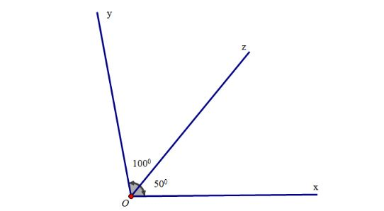 a) Trên cùng một nửa mặt phẳng bờ chứa tia Ox, có hai tia Oy, Oz và ∠xOz < ∠xOy (vì 50⁰ < 100⁰) nên tia Oz nằm giữa hai tia Ox, Oy.