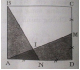 Cho hình vuông ABCD, M là trung điểm của CD, N là trung điểm của AD. Gọi I là giao điểm của AM và BN.