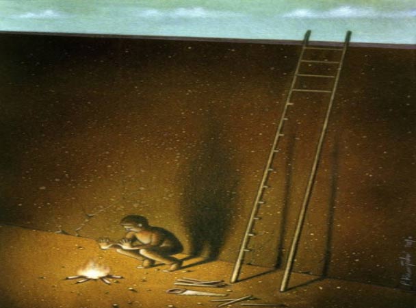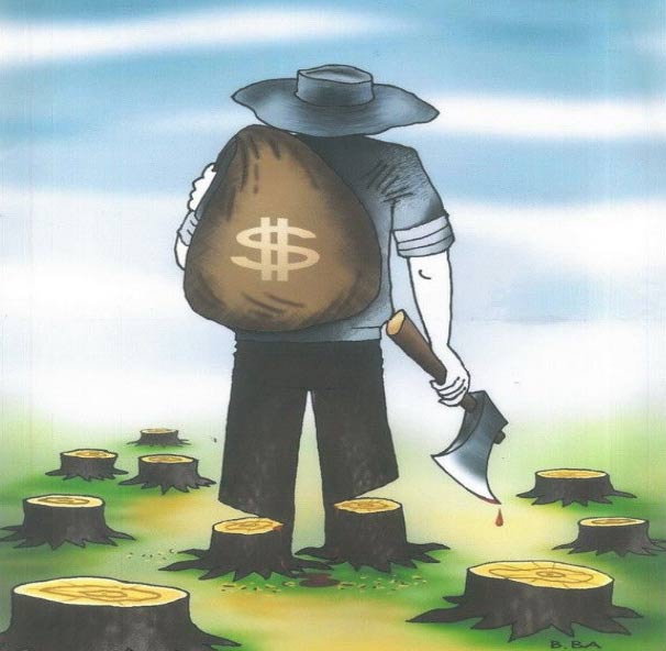 Pawel Kuczynski - nhà họa sĩ nổi tiếng người Ba Lan, được nhận hàng trăm giải thưởng về những bức tranh châm biếm, trào phúng thể hiện những mặt xấu xa của thế giới. Mỗi bức tranh của ông đều đánh thức con người bằng một thông điệp “nhỏ mà không nhỏ”. Theo em thông điệp nào được tác giả gợi ra từ bức tranh dưới đây?