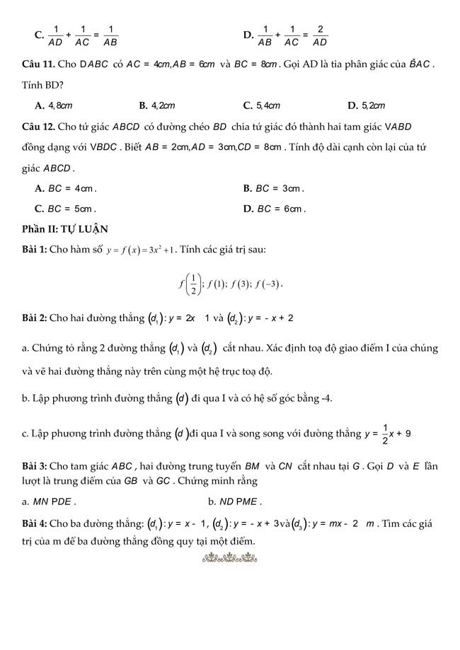 TOP 10 Đề ôn thi giữa kì 2 Toán 8 giúp các bạn học sinh làm quen với các dạng bài tập từ cơ bản tới nâng cao. Việc luyện đề giúp các bạn học sinh rèn luyện kỹ năng làm bài thi để đạt kết quả cao trong kì thi giữa kì 2 sắp tới. Vậy sau đây là 10 Đề ôn thi giữa kì 2 Toán 8 Chân trời sáng tạo, mời các bạn cùng đón đọc nhé. Bên cạnh đó các bạn xem thêm: đề thi giữa học kì 2 môn Giáo dục công dân 8 Chân trời sáng tạo, đề thi giữa kì 2 Ngữ văn 8 Chân trời sáng tạo.