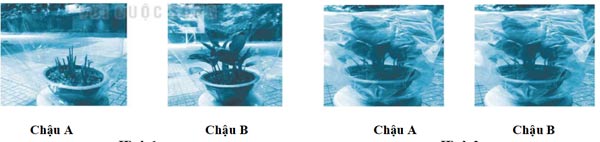 Bước 3: Trùm túi nylon trong suốt lên cây trong chậu A và chậu B, đặt hai chậu cây ra ngoài sáng (Hình 1).