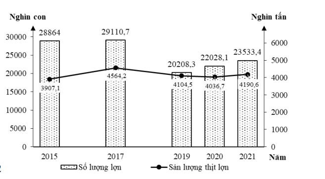 Biểu đồ thể hiện quy mô số lượng lợn và sản lượng thịt lợn |