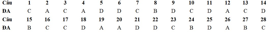 I. PHẦN TRẮC NGHIỆM (28 câu - 7,0 điểm)