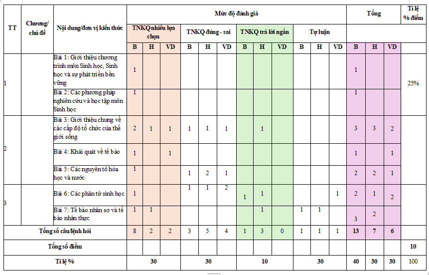 Tìm hiểu thêm »Đề thi giữa học kì 1 Sinh học 10 Cánh diều năm 2025 - 2026 có đáp án giải chi tiết kèm theo bảng ma trận đề thi, giúp các bạn học sinh ôn luyện củng cố kiến thức để biết cách ôn tập đạt kết quả cao.