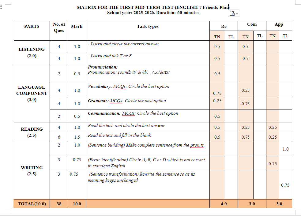 THE FIRST MID-TERM TEST English 7 – Duration: 60 minutes School year: 2025-2026 |