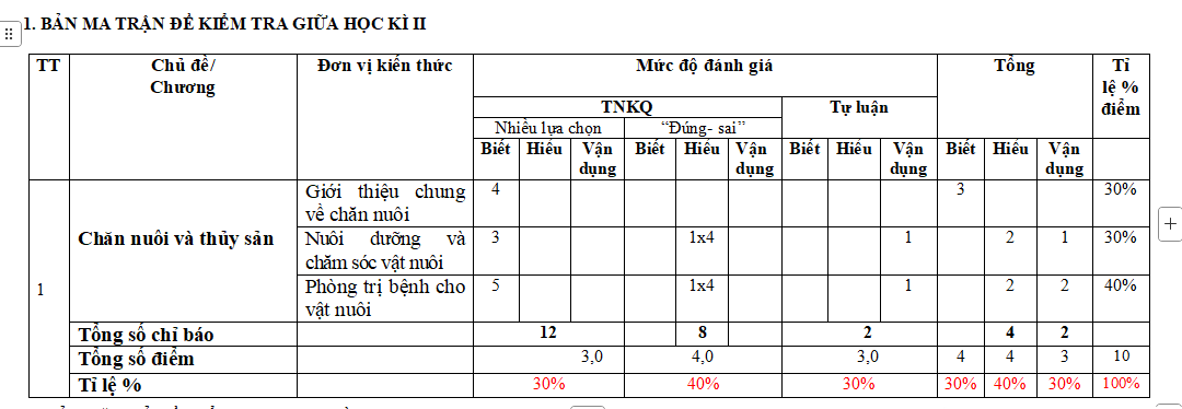 Câu 1. Vai trò của chăn nuôi là [a2.2]