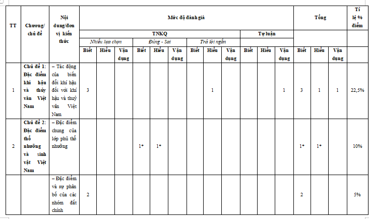 Lưu ý: Bộ đề thi giữa học kì 2 Địa lí 8 Chân trời sáng tạo có cấu trúc như sau. Tùy theo yêu cầu của từng trường mà thầy cô ra đề cho các em nhé.