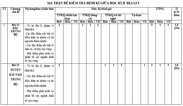 ĐỀ KIỂM TRA GIỮA HỌC KÌ II MÔN: LỊCH SỬ VÀ ĐỊA LÍ 9 (PHÂN MÔN ĐỊA LÍ) Thời gian làm bài: 45 phút |