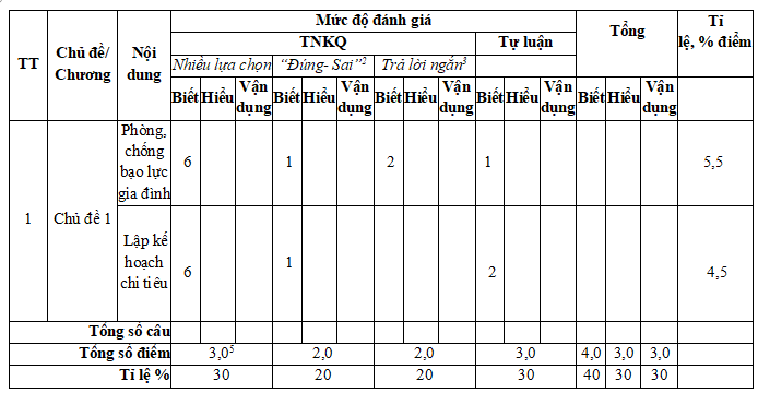 Xem đầy đủ bản đặc tả đề thi trong file tải về