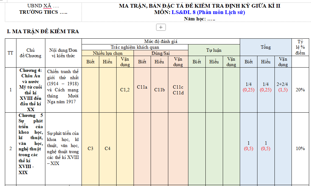Lưu ý: Bộ đề thi giữa học kì 2 Lịch sử 8 Kết nối tri thức có cấu trúc như sau. Tùy theo yêu cầu của từng trường mà thầy cô ra đề cho các em nhé.