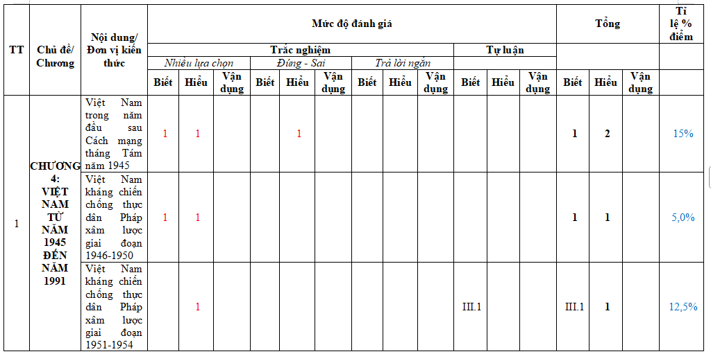 Ma trận đề thi giữa kì 2 Lịch sử lớp 9