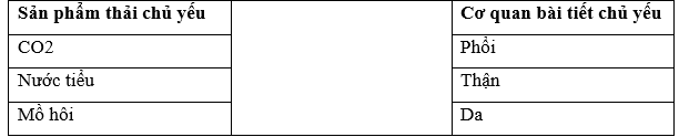 Câu 3 Nối sản phẩm thải với cơ quan bài tiết sao cho phù hợp.