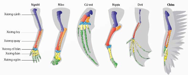 a) Tay người, vây cá voi và cánh dơi được gọi là cấu trúc tương đồng.