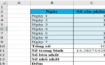 Câu 1. Cho bảng tính sau, em hãy trả lời các câu hỏi 1, câu 2 Để tính tổng số sản phẩm làm được trong 7 ngày em dùng hàm nào sau đây?