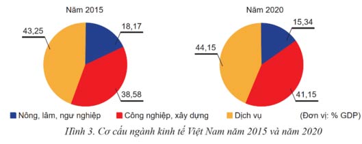C. So với năm 2015, tỉ trọng của tất cả các ngành kinh tế ở Việt Nam năm 2020 đều tăng.