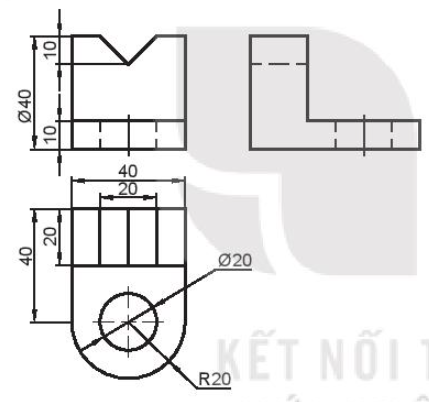 Câu 2 (2 điểm). Vẽ hình chiếu vuông góc của vật thể sau: