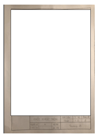 Câu 1 (2 điểm). Em hãy kẻ khung bản vẽ và khung tên theo tỉ lệ 1: 3?