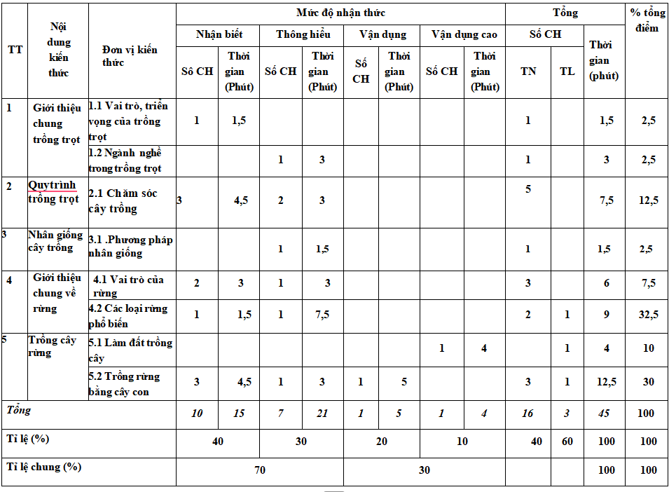 Câu 30 (1 điểm): Em hãy đề xuất các biện pháp chăm sóc một loại cây rừng mà em biết tại địa phương?