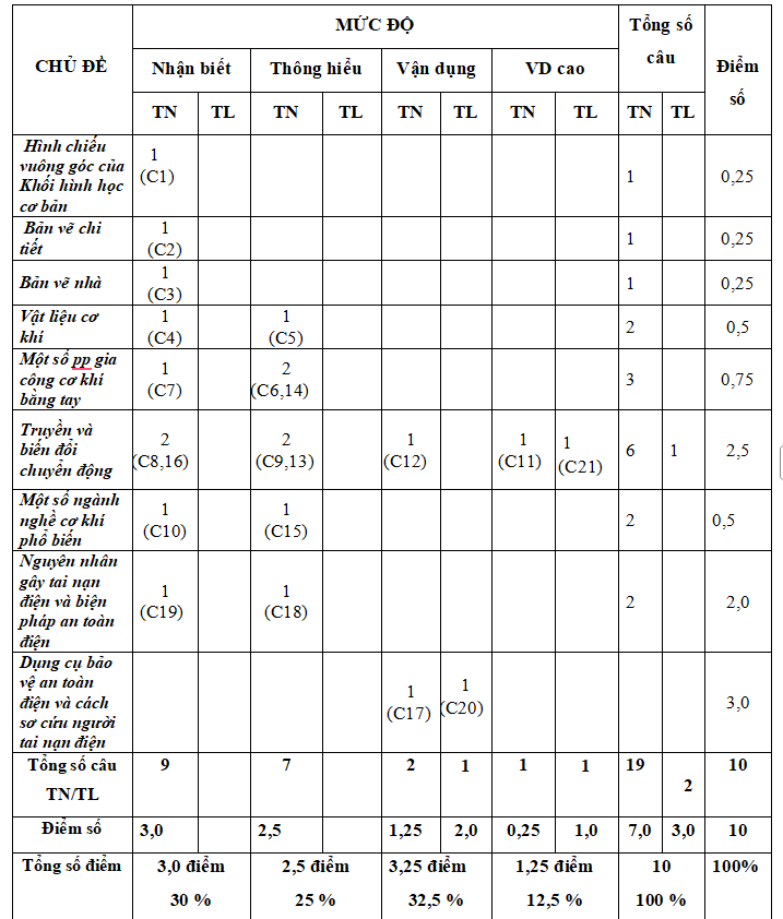 Đề thi cuối kì 1 Công nghệ 8 Cánh diều có cấu trúc như sau. Tùy theo yêu cầu của từng Sở mà thầy cô ra đề cho các em nhé.