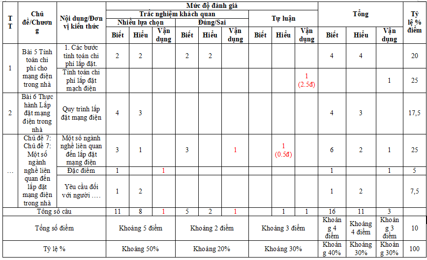 Câu 21. Tính toán chi phí mạng điện trong nhà là một quy trình quan trọng giúp gia đình lựa chọn các thiết bị điện phù hợp với nhu cầu sử dụng và điều kiện kinh tế. Quy trình này bao gồm 3 bước chính: nghiên cứu sơ đồ lắp đặt, lập bảng kê số lượng thiết bị vật liệu, và tính toán chi phí cụ thể. Khi thực hiện, cần xác định chính xác các thông số như loại dây dẫn, tiết diện lõi, các thiết bị điện như aptomat, công tắc, ổ cắm, và công suất của các đồ dùng điện. Việc tham khảo bảng giá và lập bảng tính toán chi tiết sẽ giúp người dùng có cái nhìn tổng quan về kinh phí lắp đặt mạng điện.