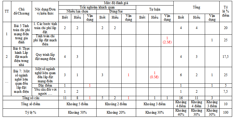 Câu 6: Nội dung nào sau đây không phải yêu cầu khi thực hành lắp mạng điện trong nhà?