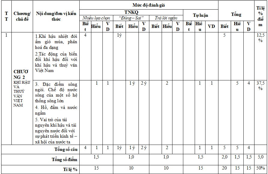 Lưu ý: Bộ đề thi cuối kì 1 Địa lí 8 Chân trời sáng tạo có cấu trúc như sau. Tùy theo yêu cầu của từng Sở mà thầy cô ra đề cho các em nhé.