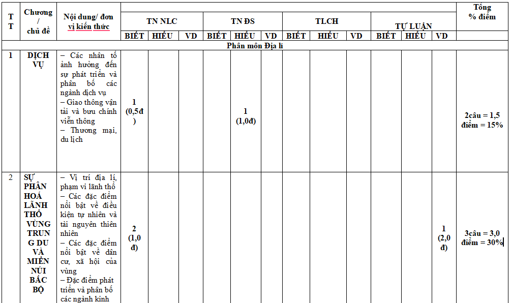 Lưu ý: Bộ đề thi cuối kì 1 Địa lí 9 năm 2025 có cấu trúc như sau. Tùy theo yêu cầu của từng Sở mà thầy cô ra đề cho các em nhé.
