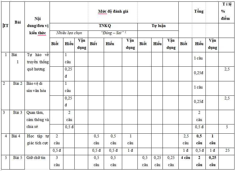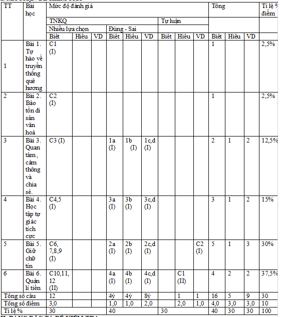 Xem đầy đủ ma trạn, bản đặc tả trong file tải về