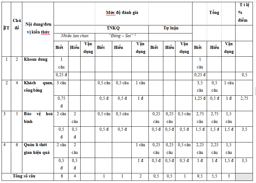 Xem đầy đủ ma trận, bản đặc tả đề thi trong file tải về