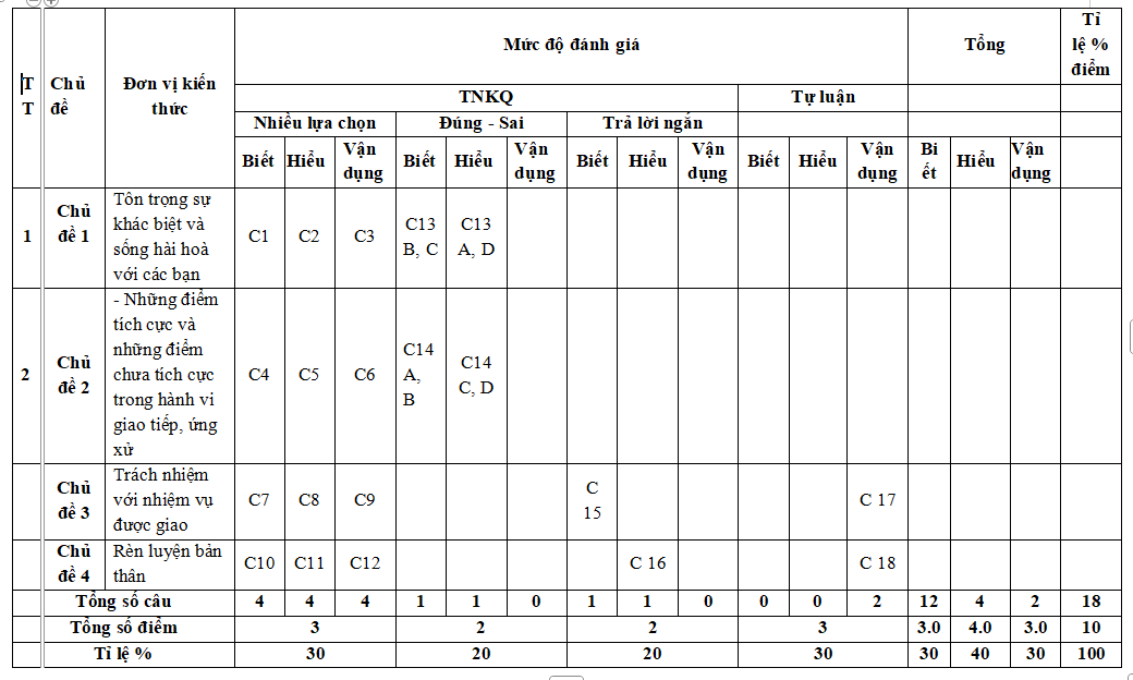 Lưu ý: Đề thi cuối kì 1 Hoạt động trải nghiệm 9 Kết nối tri thức có cấu trúc như sau. Tùy theo yêu cầu của từng Sở mà thầy cô ra đề cho các em nhé.