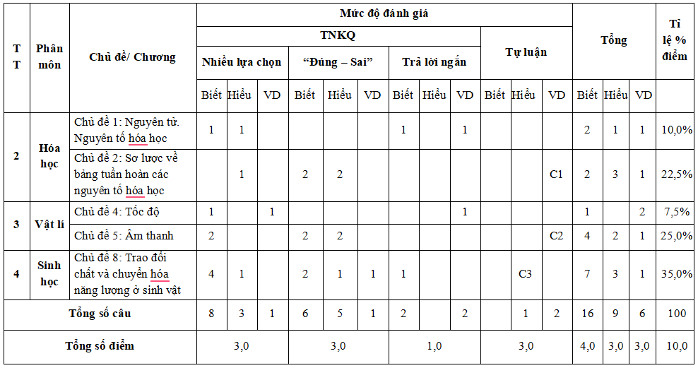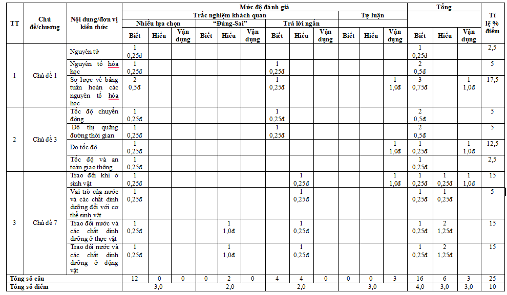 Lưu ý: Bộ đề thi cuối học kì 1 Khoa học tự nhiên 7 có cấu trúc như sau. Tùy theo yêu cầu của từng Sở mà thầy cô ra đề cho các em nhé.