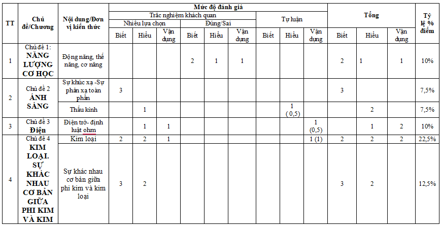 - Đề thi học kì 1 Khoa học tự nhiên 9 Chân trời sáng tạo có cấu trúc như sau: