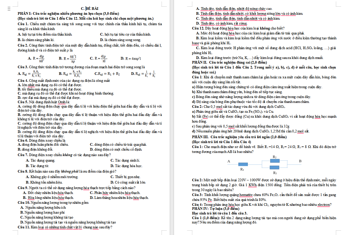 TOP 3 Đề thi cuối học kì 1 Khoa học tự nhiên 9 Cánh diều năm 2025 được biên soạn theo cấu trúc mới theo CV 7991 với 2 thang điểm (3-2-2-3, 3-4-3, 3-1-6). Qua đề thi cuối kì 1 Khoa học tự nhiên 9 giúp học sinh biết được cấu trúc đề, dạng câu hỏi và mức độ kiến thức cần nắm để ôn tập hiệu quả. Đồng thời là căn cứ để giáo viên xây dựng đề thi phù hợp với chương trình, chuẩn kiến thức – kĩ năng. Các đề thi cuối kì 1 Khoa học tự nhiên 9 vừa là công cụ đánh giá, vừa là tài liệu định hướng ôn tập và nâng cao hiệu quả dạy học. Bên cạnh đó các bạn xem thêm đề thi học kì 1 môn GDCD 9 Cánh diều.