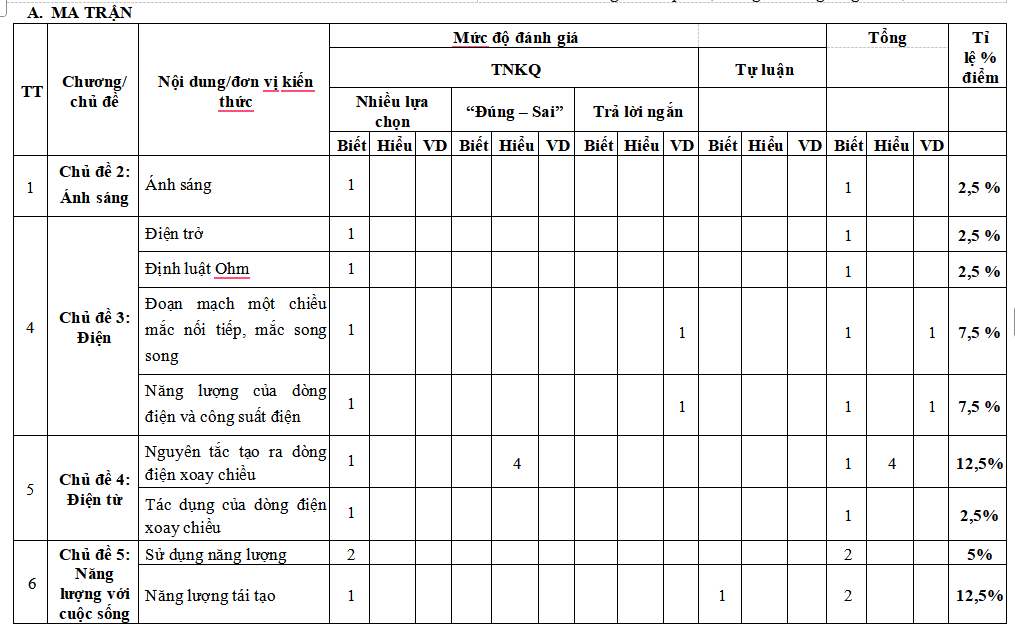 Lưu ý: Bộ đề thi học kì 1 Khoa học tự nhiên 9 Cánh diều có cấu trúc như sau. Tùy theo yêu cầu của từng Sở mà thầy cô ra đề cho các em nhé.