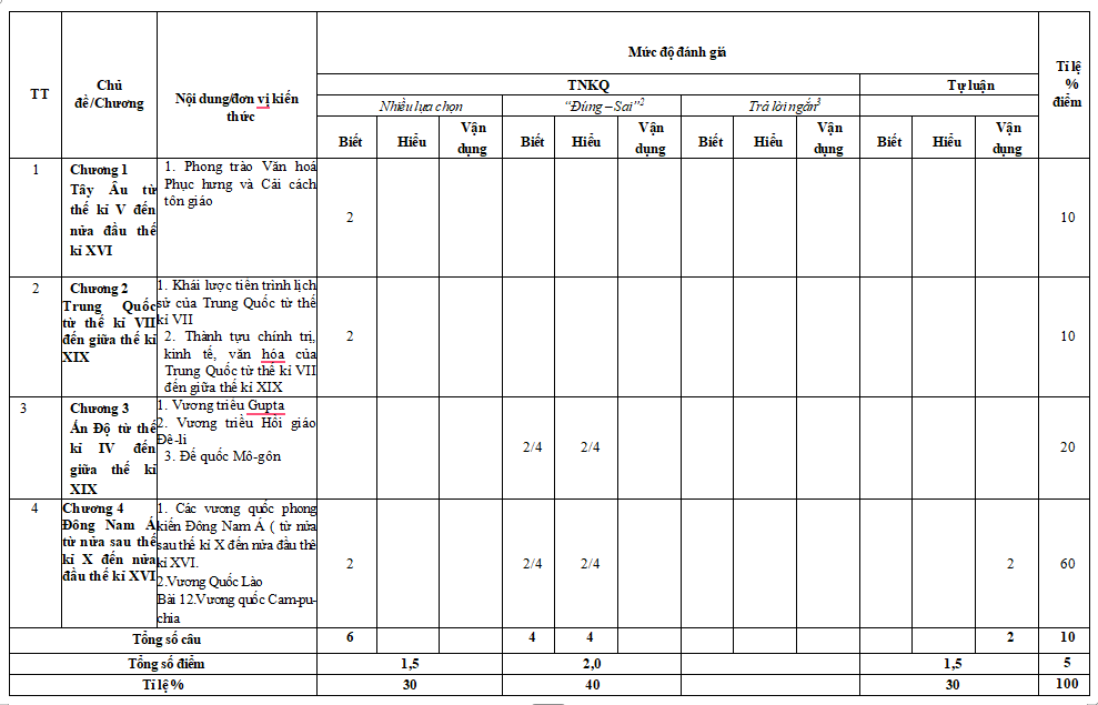 Lưu ý: Bộ đề thi cuối kì 1 Lịch sử 7 Chân trời sáng tạo có cấu trúc như sau. Tùy theo yêu cầu của từng Sở mà thầy cô ra đề cho các em nhé.