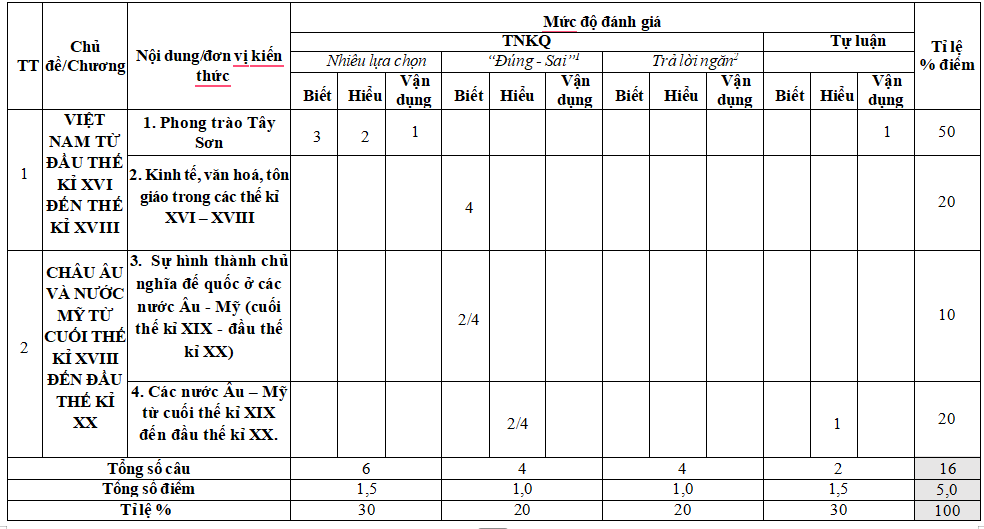 Lưu ý: Bộ đề thi cuối kì 1 Lịch sử 8 Kết nối tri thức có cấu trúc như sau. Tùy theo yêu cầu của từng Sở mà thầy cô ra đề cho các em nhé.