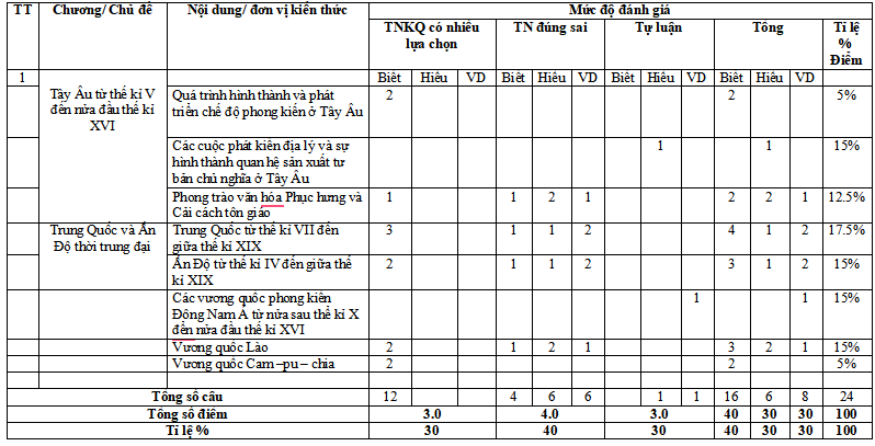 Lưu ý: Đề thi cuối kì 1 Lịch sử và Địa lí 7 Kết nối tri thức có cấu trúc như sau. Tùy theo yêu cầu của từng Sở mà thầy cô ra đề cho các em nhé.