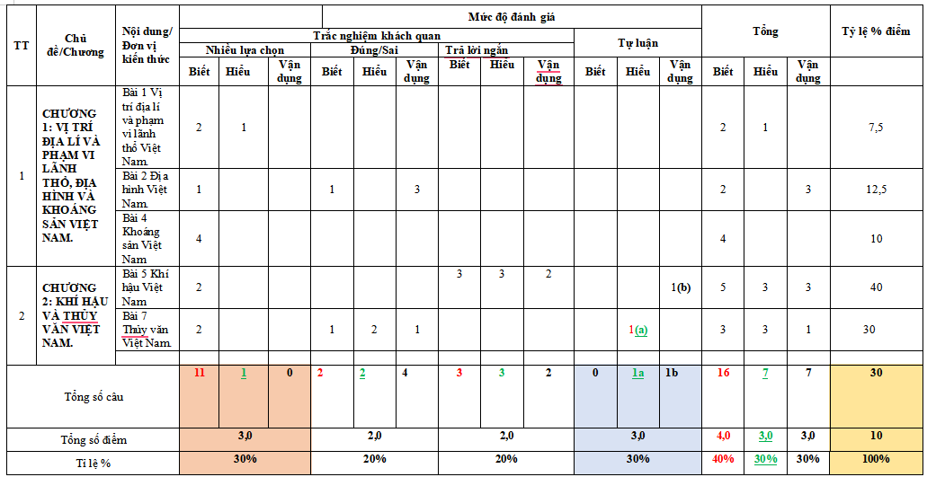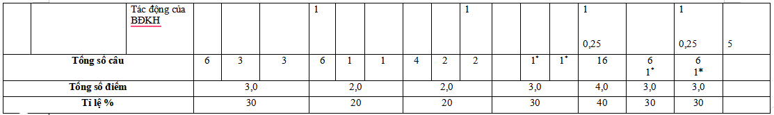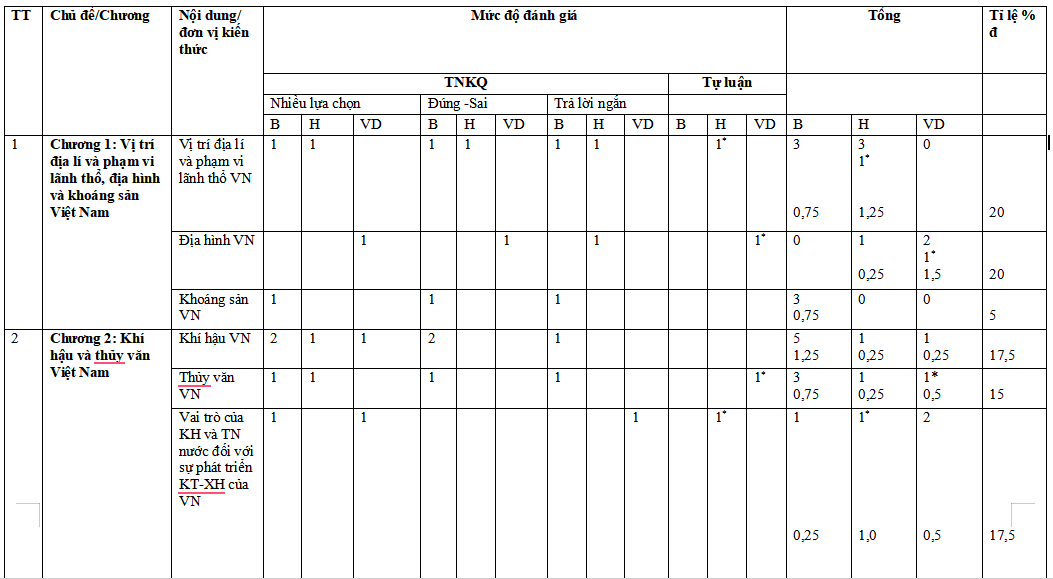 Ma trận đề thi cuối kì 1 Địa lí 8
