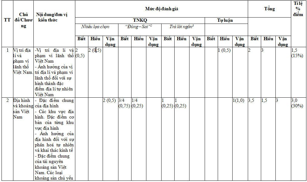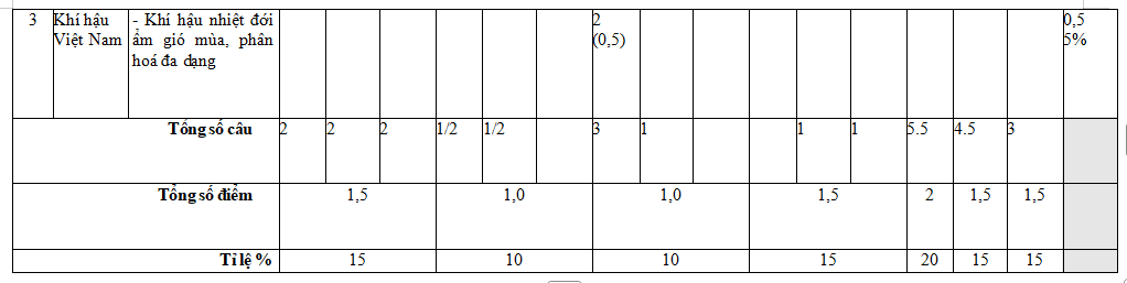 Lưu ý: Bộ đề thi cuối kì 1 Lịch sử và Địa lí 8 Kết nối tri thức có cấu trúc như sau. Tùy theo yêu cầu của từng Sở mà thầy cô ra đề cho các em nhé.