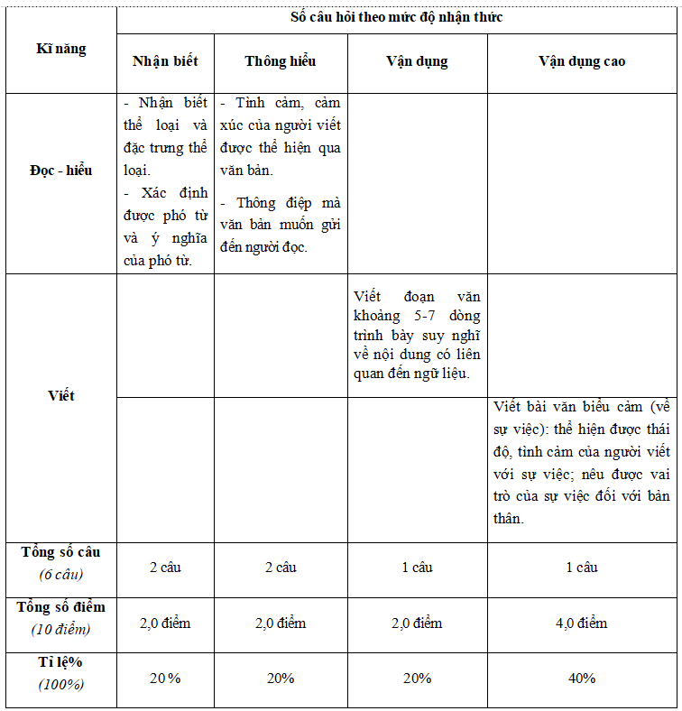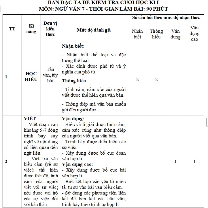 - Đề thi cuối kì 1 Ngữ văn 7 Chân trời sáng tạo có cấu trúc như sau.