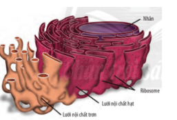 a) Trên lưới nội chất hạt có các hạt ribosome. Tại các hạt ribosome diễn ra sự tổng hợp protein.