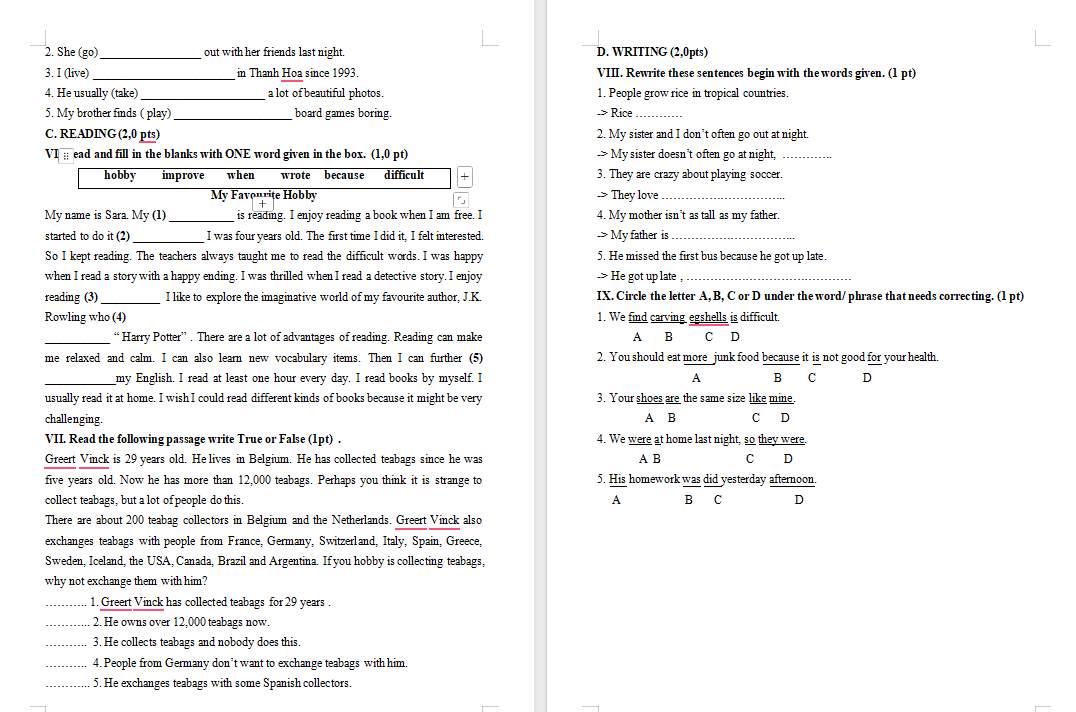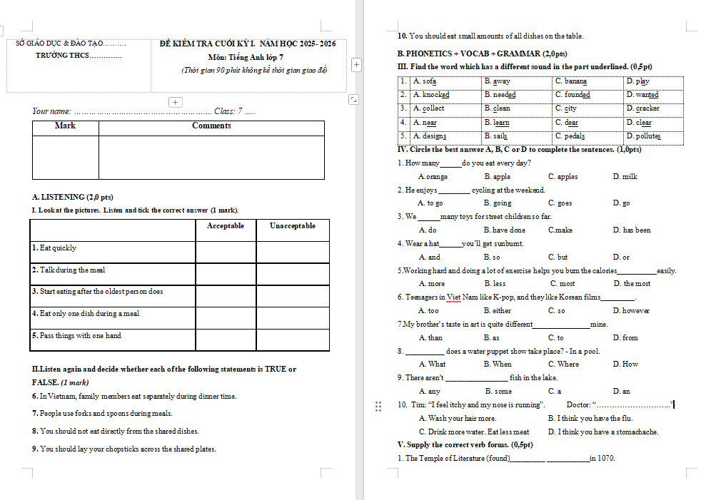 Mời các bạn tải file về để xem trọn bộ đề thi cuối kì 1 Tiếng Anh 7