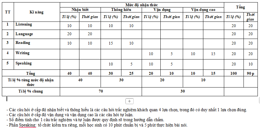 Bộ đề thi học kì 1 môn Tiếng Anh 7 i-Learn Smart World có cấu trúc như sau. Tùy vào yêu cầu của từng Sở mà các thầy cô ra đề kiểm tra cho các em nhé.